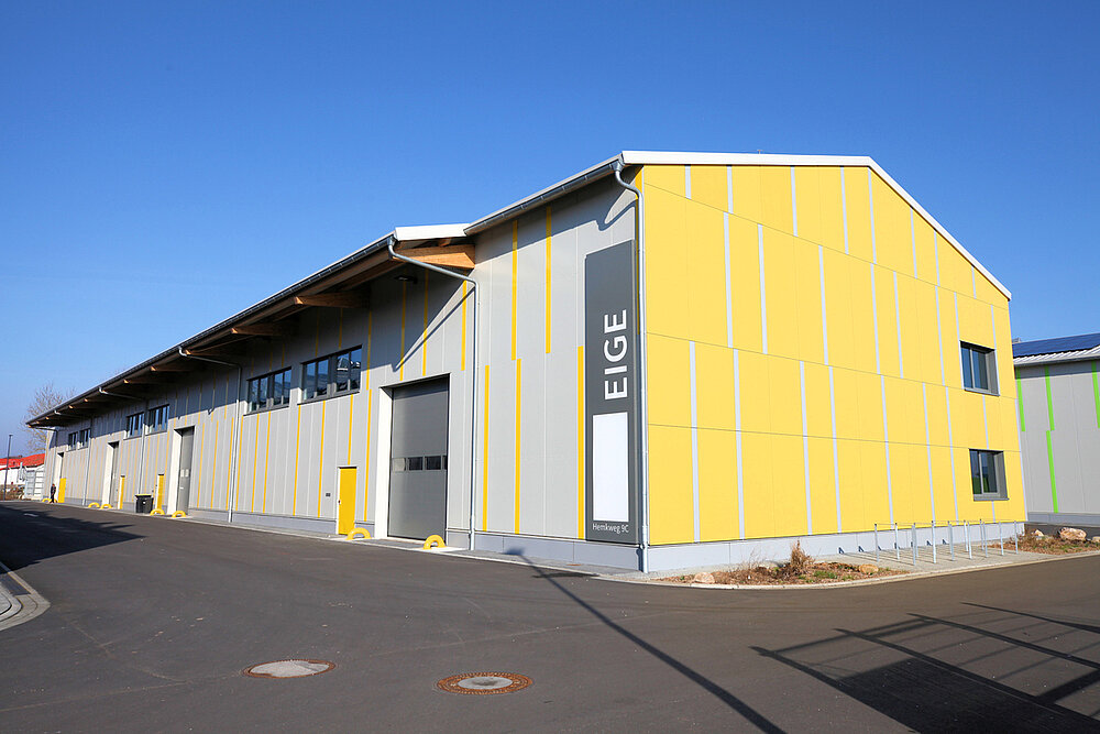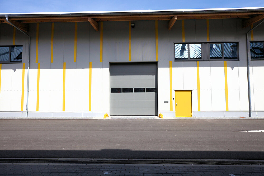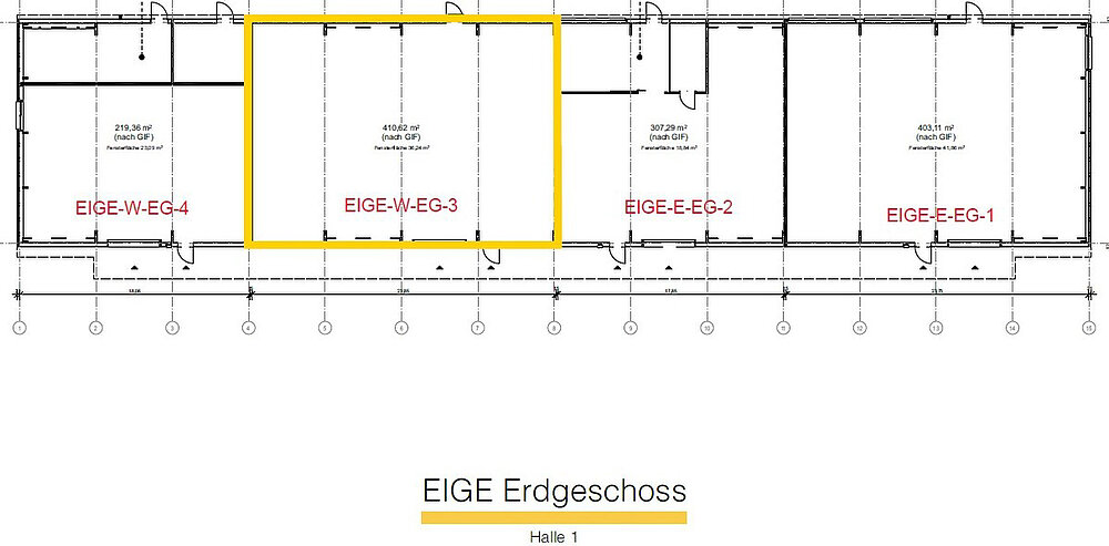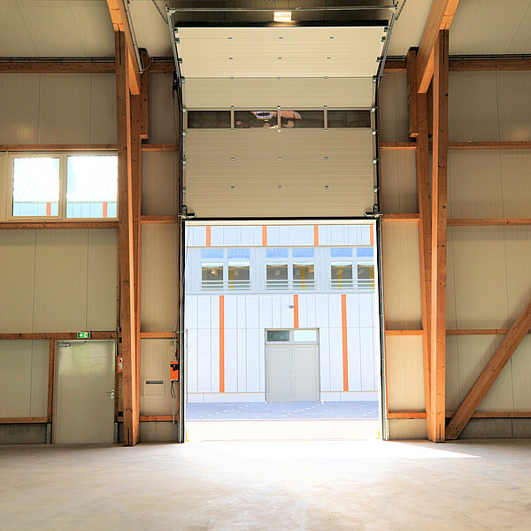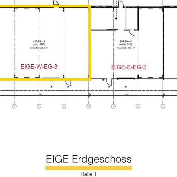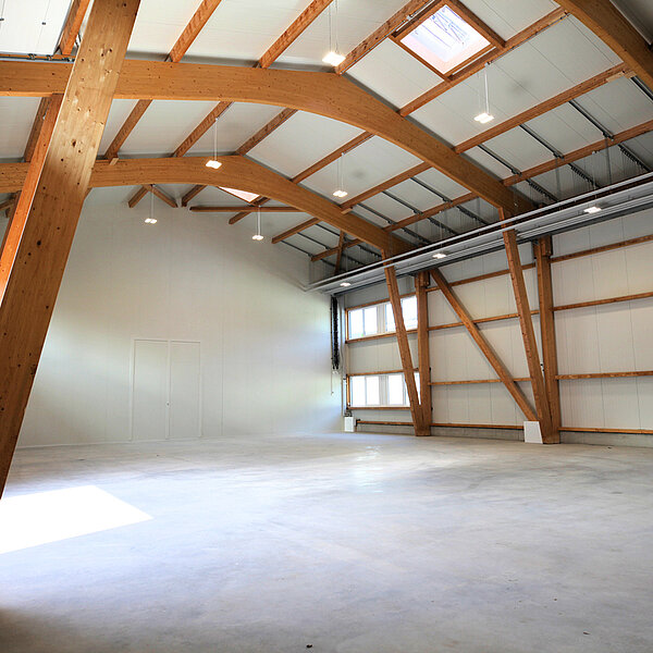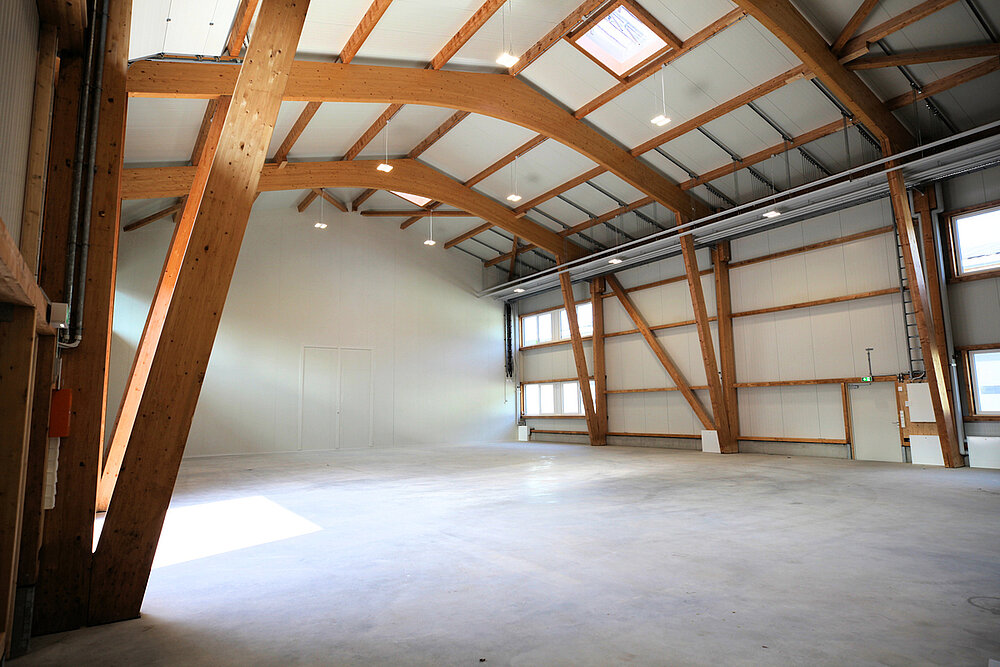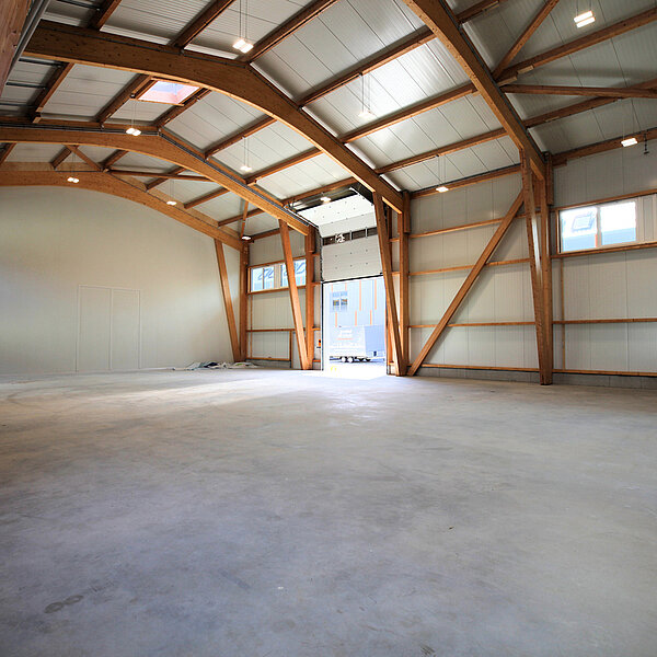 Die Flächen sind so gestaltet, dass interessierte Betriebe für ihr Unternehmen ideale Bedingungen zur individuellen Gestaltung vorfinden. Im Ergebnis sorgt der modulare Aufbau für Lösungen, die den Vorstellungen der Mieter entsprechen. Trennwände zur Bildung von Abtrennungen für Lager/Sozialraum/Büro können nach Wunsch eingesetzt werden; gern erstellen wir hierzu ein Angebot. Die Hallen wurden freitragend ausgeführt und haben eine Höhe von neun Metern. Seitenlichtbänder sind vorhanden und sorgen für natürliches Tageslicht.